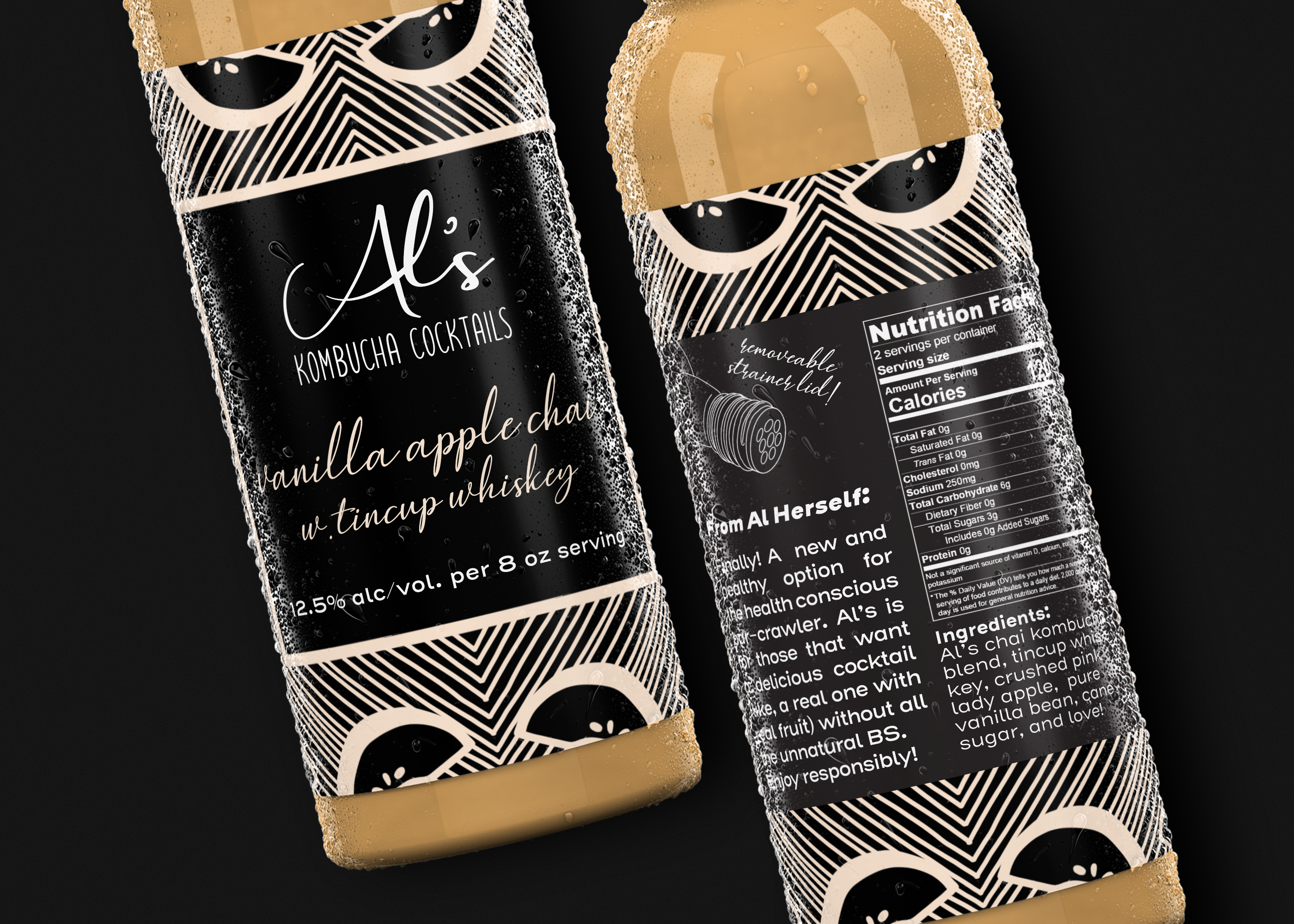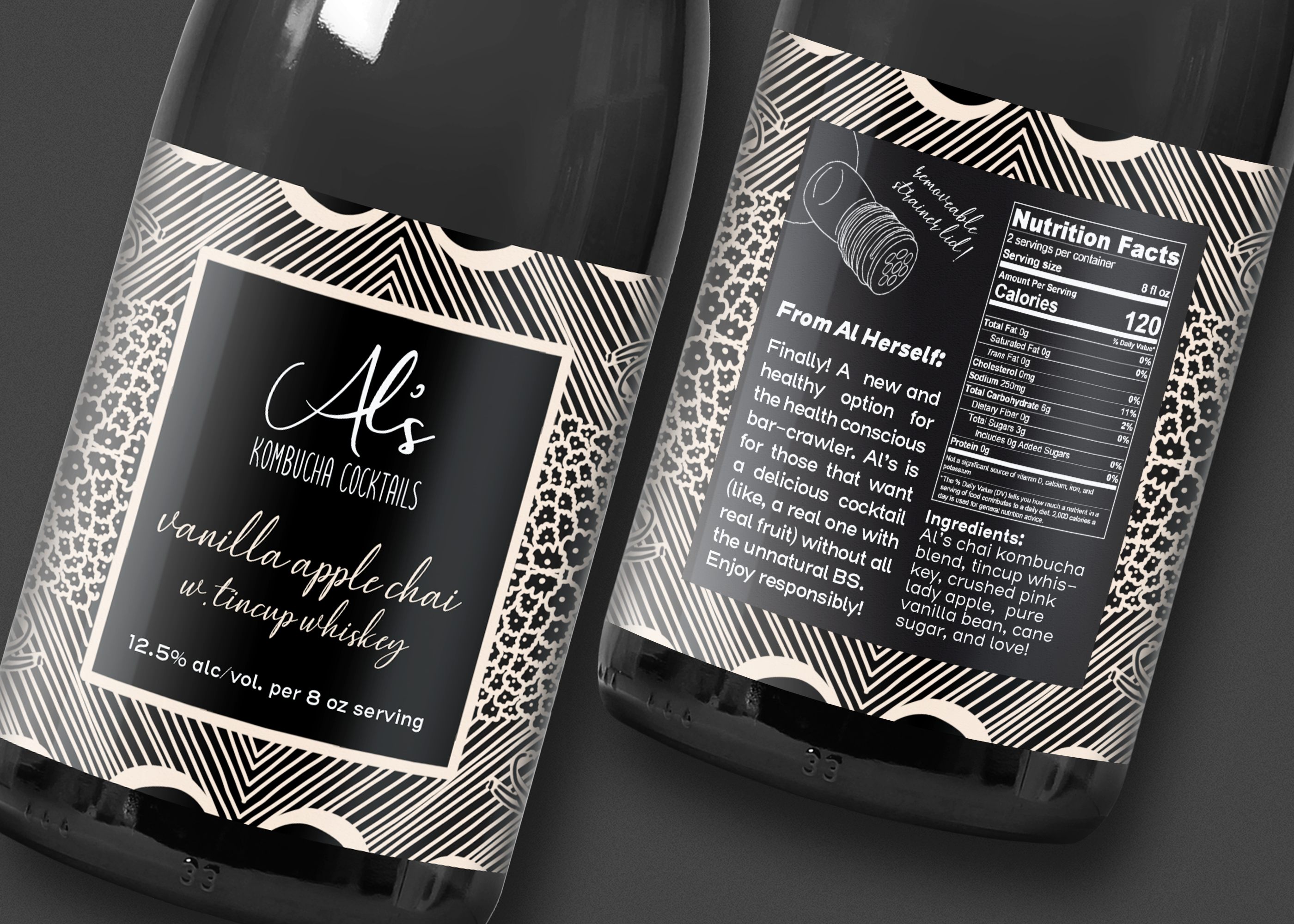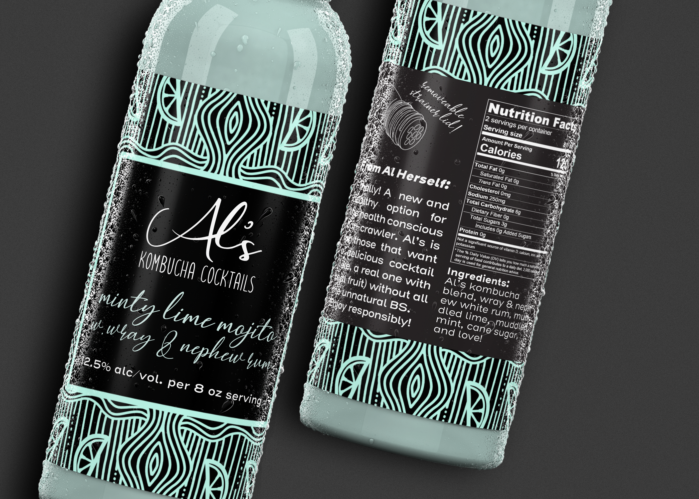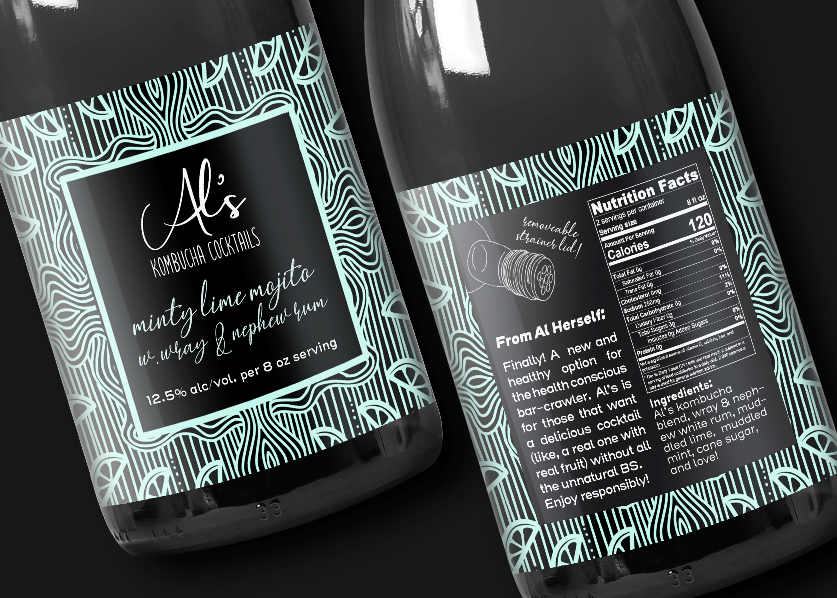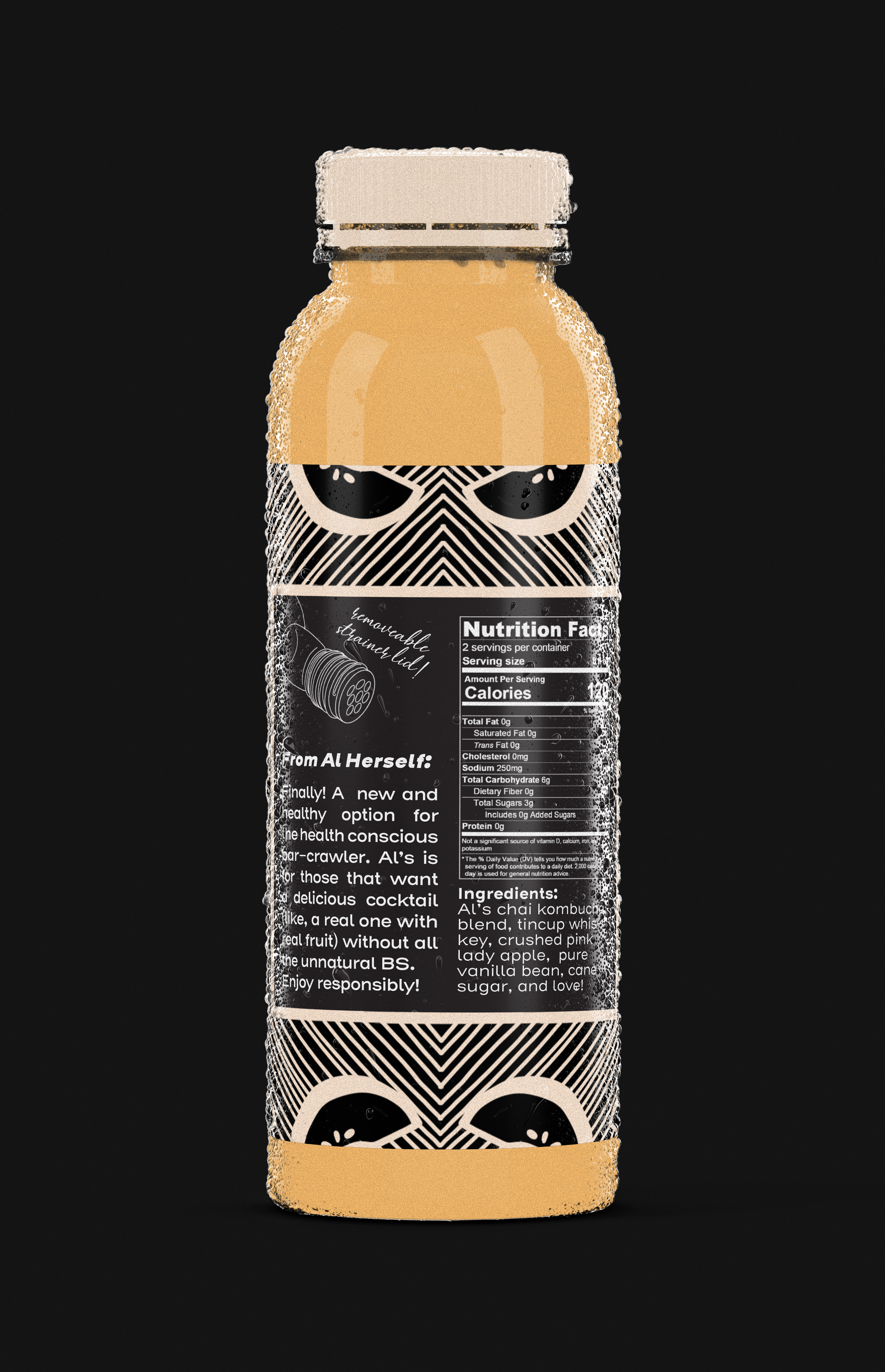 The concept for this project came naturally. Over draft kombucha at a local brewery, a friend and I wondered whether kombucha could contain alcohol. Would it still retain its health benefits? Yes! Did such a product already exist? Surprisingly, it didn’t! With an upcoming Form and Function Project in my packaging design class, this idea immediately became exciting. It later became a standout piece in my college portfolio, earning recognition as a crowd favorite.